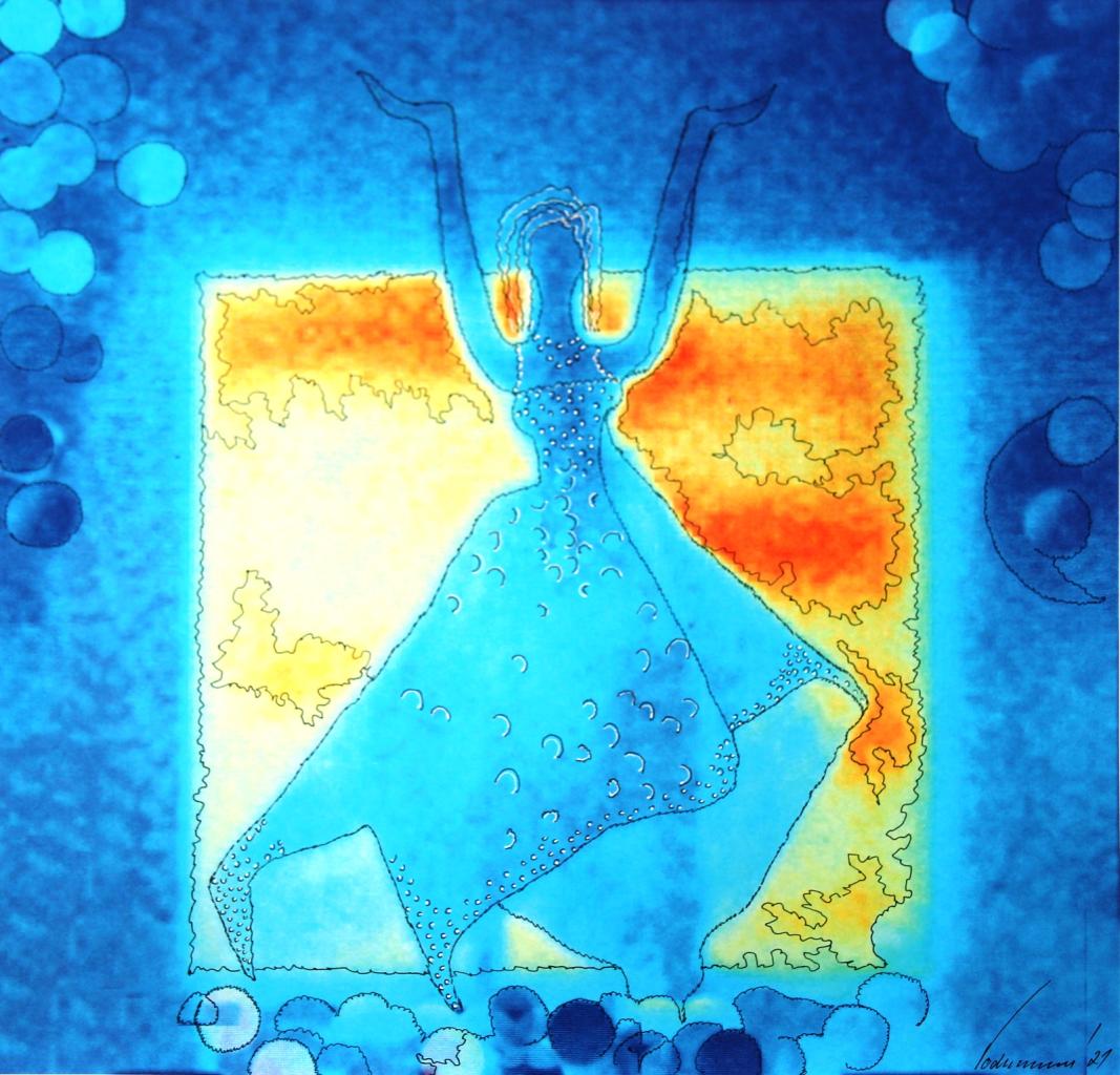 Na této výstavě jsem se pokusila, kombinovanou technikou , zachytit svět snů.