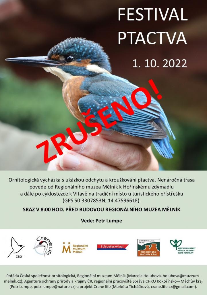 ❌Festival ptactva, který se měl konat zítra (1. 10.) od 8:00 je PRO NEMOC ZRUŠEN! Omlouváme se a děkujeme za pochopení.
