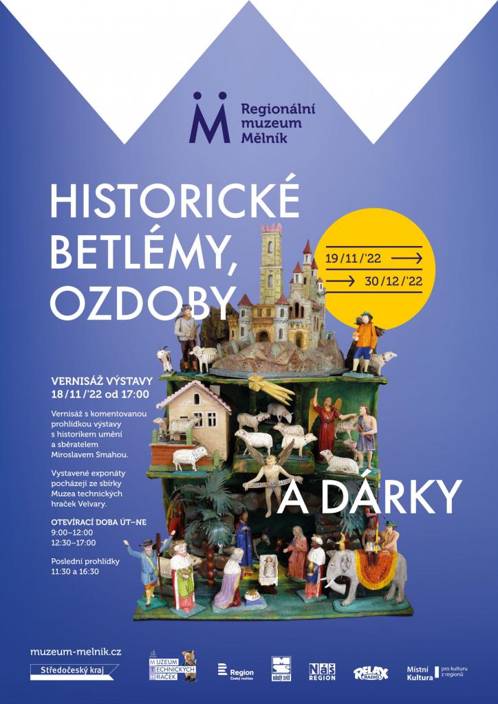 Vánoční výstava představí unikátní vyřezávané a ručně malované betlémy z let 1840–1940. Většina těchto dřevěných betlémů je postavena do prosklených skříněk. Větší část vystaveného souboru betlémových figurek pochází z podhůří Jeseníků a Orlických hor – z městečka Králíky a okolí, kde vznikaly jedny z nejkrásnějších českých betlémů. Nejstaršími figurkami je trojice jemně řezaných tří svatých králů z 19. století od školeného řezbáře, jenž v minulosti patřila k velké sestavě králického betléma. Unikátní soubor tvoří osm velkých králických figur pocházejících z kostelního betléma. Spolu se skupinou oveček tvoří jedinečný příklad králických figur v nálezovém nerestaurovaném stavu, které dokumentují pečlivý rukopis lidových řezbářů a svou velikostí patří k dnes již ojedinělým muzejním exponátům.