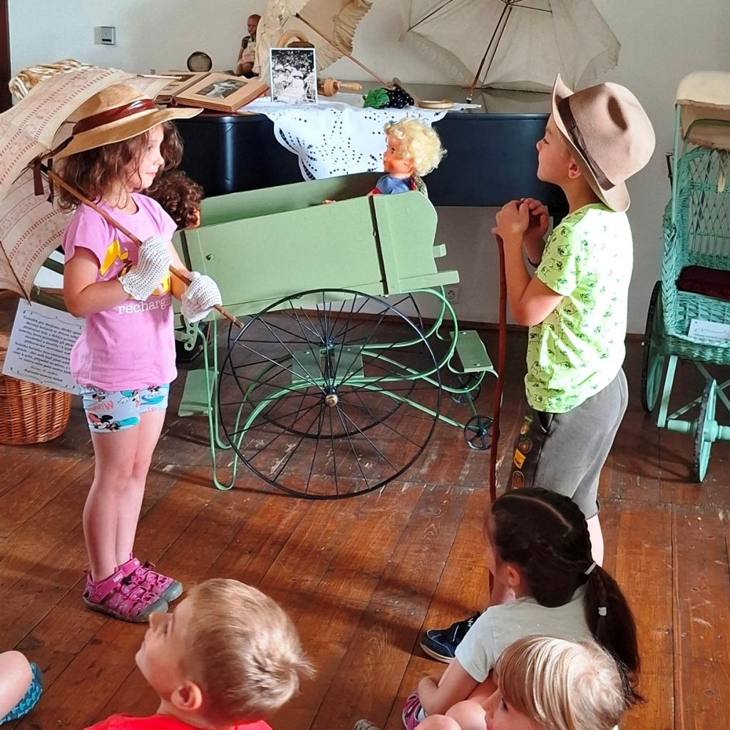 Historii dětských kočárků přiblíží muzejní pedagožky dětem hrou na výlet do přírody. Dozvíte se Kdo je sporťák, co žádné dámě ani pánovi nesmělo na pikniku dříve chybět, pobaví Vás hádanka a v kouzelné dílničce si vlastnoručně vyrobíte cvrnkací kuličky či hrací kostku.