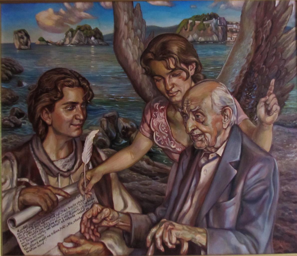Jak jsem se potkal se stoletým. V r. 1995 jsem měl krátce po svatbě, když jsem se potkal s čilým staříkem, kterému bych ani náhodou nehádal, že se blíží ke stovce. Zeptal se mně: "A už jste se pohádali? " Já na to rozpačitě: "Jo." A on vesele: "Tak to vám to vydrží." A dodal: "Když jsem se naposledy ženil, to jsem byl ještě mladý, to mi bylo jenom pětadevadesát." Potkával jsem ho dalších sedm let a dvakrát jsem si ho namaloval. Ve sto dvou letech nesl nějaký balík z pošty. Byl zvyklý při průchodu domovními dveřmi obě křídla rozrazit a rychle projít. Jenže s tím balíkem to nestihnul. Ty těžké dveře ho zasáhly do hlavy. Navštívil jsem ho. Ležel v posteli, na půl těla ochrnutý, nemohl mluvit, jíst. Přinesl jsem mu mateří kašičku ze včelařského obchodu, přikývl na souhlas a trochu si ji vzal. Pomodlili jsme se a já si v duchu slíbil, že jestli se uzdraví tak toho Apoštola Jana namaluji!