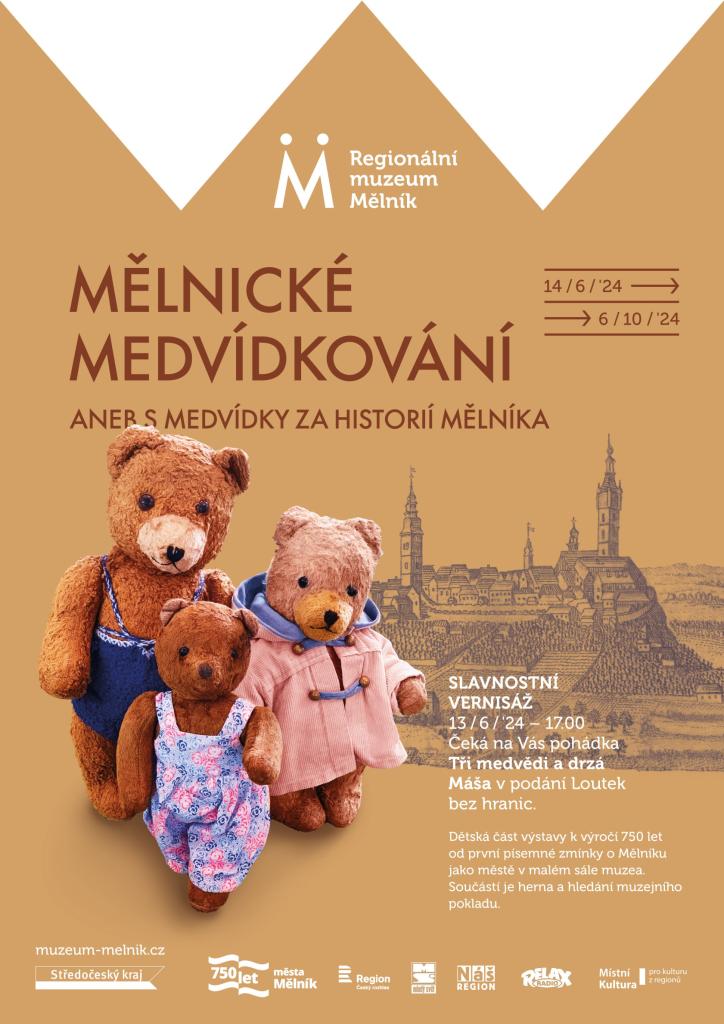 Město Mělník letos slaví 750 let a muzejní medvídek Míša Plýša si pozval kamarády, aby to spolu oslavili. A že jich je plný malý muzejní sál se přesvědčíte, když dorazíte na výstavu Mělnické medvídkování aneb s medvídky za historií Mělníka. I Ti nejmenší návštěvníci se mohou dozvědět čím se naše město proslavilo v minulosti a s čím je spojováno dodnes. Průvodci jim budou sami medvídci a jejich kouzelná abeceda.