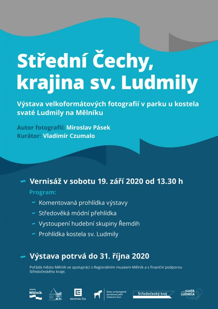 Výstava velkoformátových fotografií Miroslava Páska míst spojených s životem sv. Ludmily v parku u kostela sv. Ludmily.