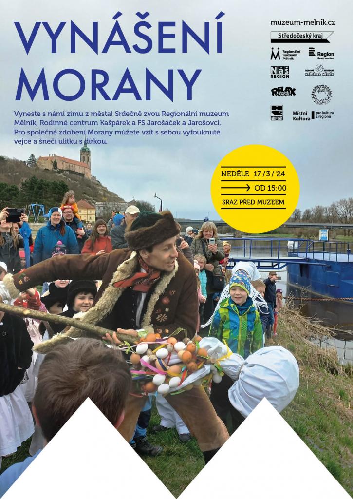 Společně ustrojíme Moranu a za zpěvu a tance ji vyneseme z města k řece. Průvod započne vyprávěním muzejnic o původu zvyklosti a těšit se můžete na vystoupení dětí z Jarošáčku...Kromě dobré nálady s sebou můžete vzít vyfouknuté vejce a šnečí ulitku s dírkou pro nazdobení Morany.