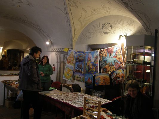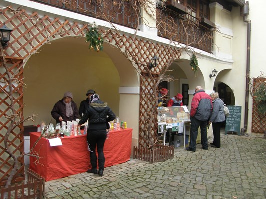 V sobotu 7. prosince proběhl v Regionálním muzeu Mělník další ročník oblíbeného Předvánočního řemeslnického jarmarku s pestrou nabídkou adventně a vánočně laděného zboží. Nechyběly výrobky hrnčířů, šperkařů, perníkářů a mnoha dalších řemeslníků a také bylinkářské produkty, decoupage, obrázky, vánoční vazby a dekorace, hračky, i práce malované, drátkované nebo třeba batikované … Pozvání přijala i rodinná společnost tradičních výrobců skleněných foukaných ozdob. U řady našich jarmarečníků jsme pro Vás připravili interaktivní dílničky.