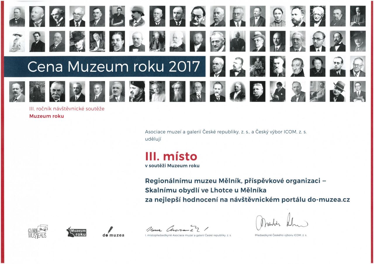 Ze Smetanovy síně Obecního domu, kde proběhlo 17. 5. vyhlášení cen Gloria musaealis a Muzeum roku si mělničtí muzejníci odvezli hned dvě ceny. V soutěži Muzeum roku získalo Regionální muzeum Mělník, p. o. první místo a skalní obydlí ve Lhotce (pobočka mělnického muzea) 3. místo.