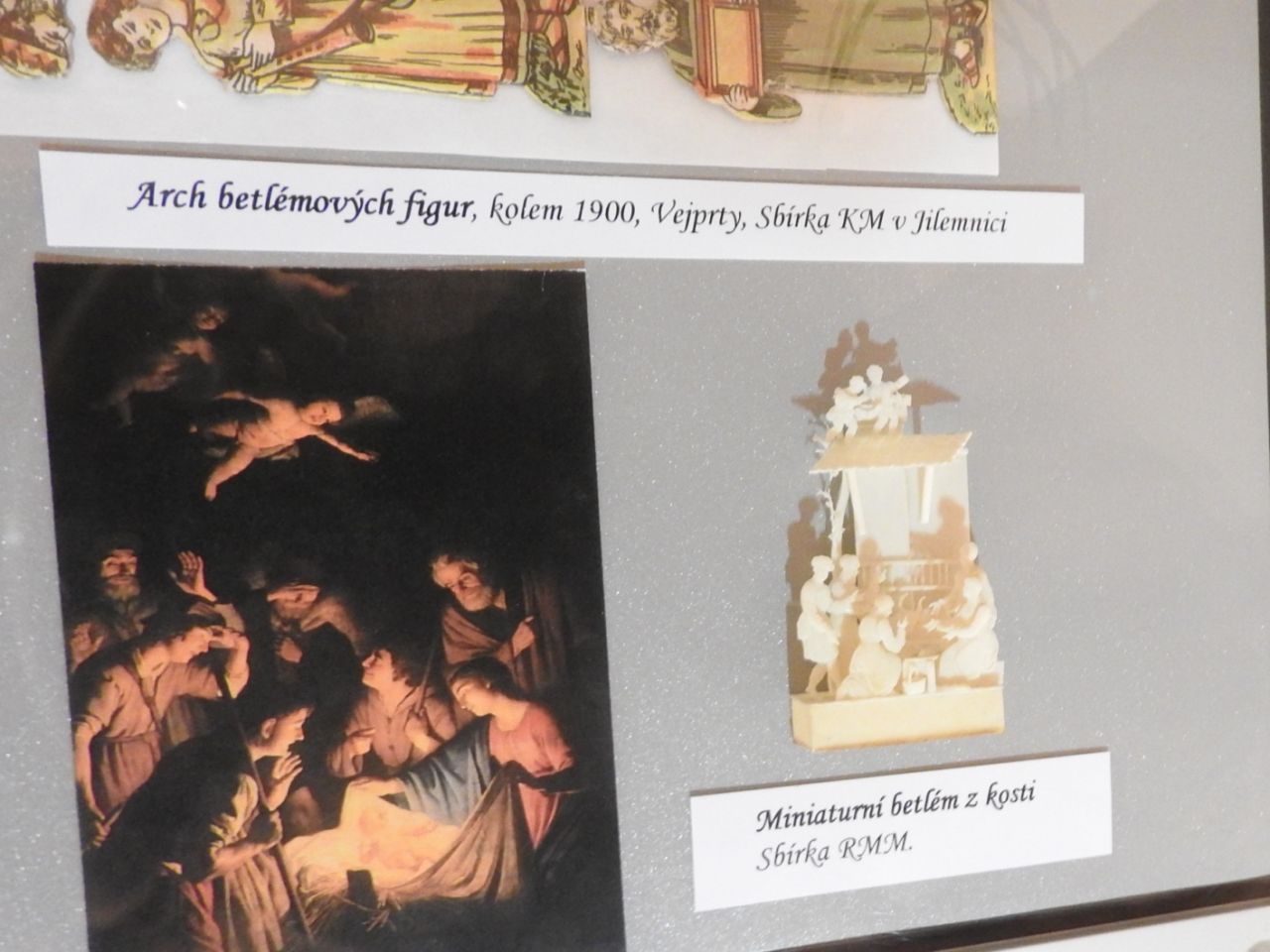 Mezi nejzajímavější exponáty patří jilemnický betlém z roku 1870, vyřezávaný betlém Václava Plecháče z Čisté u Horek z roku 1990 nebo miniaturní betlém z kosti. Obyvatele Mělníka potěší perníkový mělnický betlém, který speciálně pro výstavu vyrobila dr. Dana Holmanová.