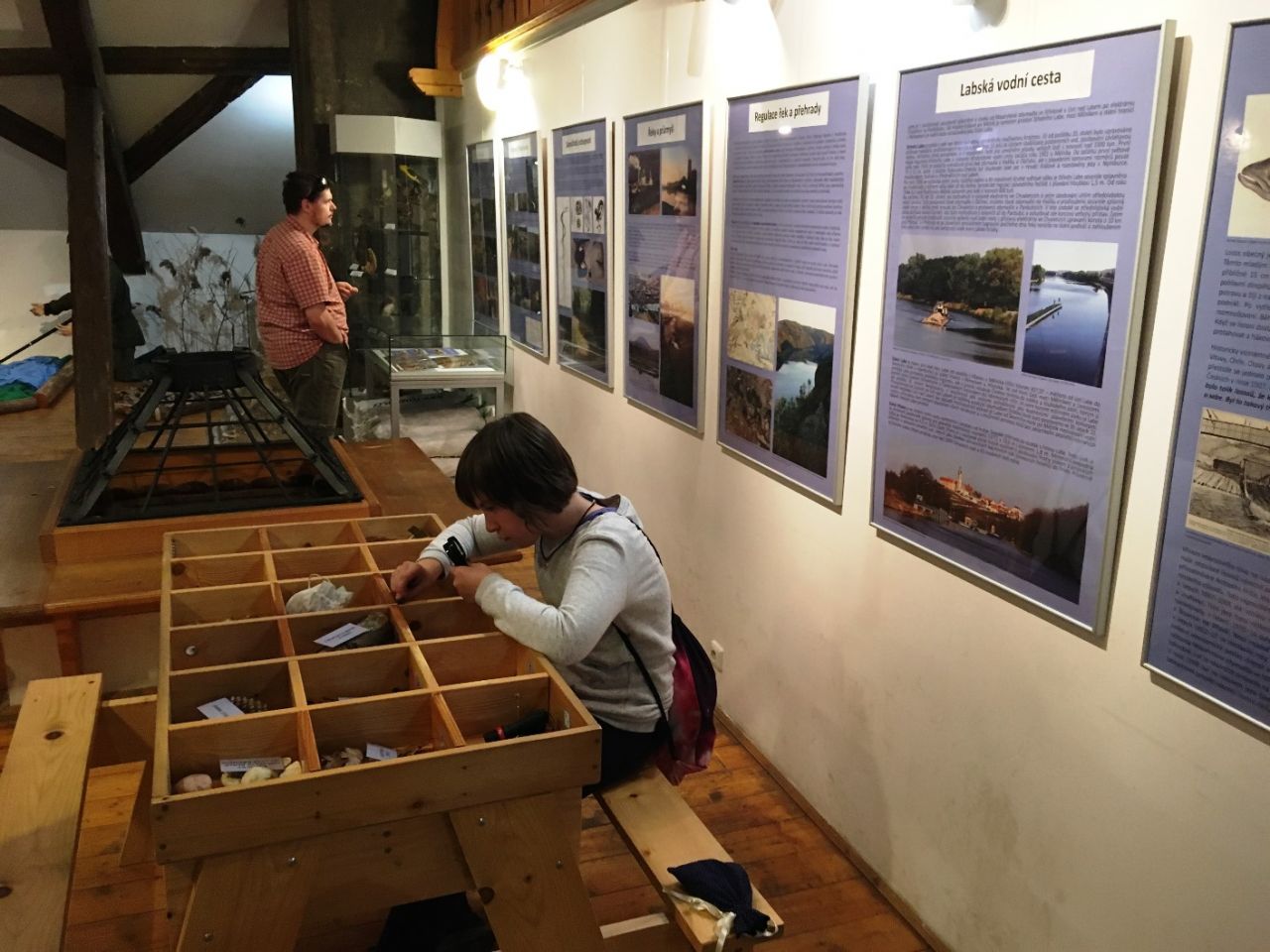Mimo to se na výstavních panelech dozvíte informace o dopadech regulace řek na životní prostředí, povodních na Mělnicku nebo vymizelých tažných druzích ryb (losos, jeseter).