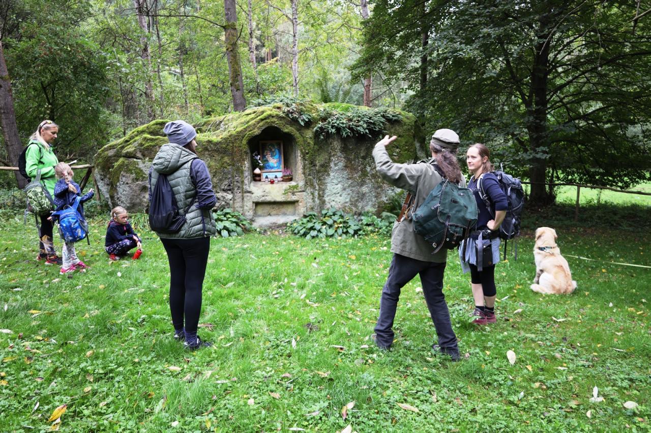 Mezinárodní den archeologie 2023 jsme oslavili vycházkou na skalní hrad Starý zámek. Od kaple sv. Václava ve Vidimi vyrazila skupina archeologických nadšenců po modré turistické značce do míst pod bývalým hradem. Průvodkyní byla muzejní archeoložka Mgr. Lucie Kučerová, která účastníky cestou seznámila i se zajímavostmi o skalním reliéfu Madony či výklenkové kapli. Cennými poznatky přispěl také badatel a znalec místní krajiny Čikala Milan Mráz.