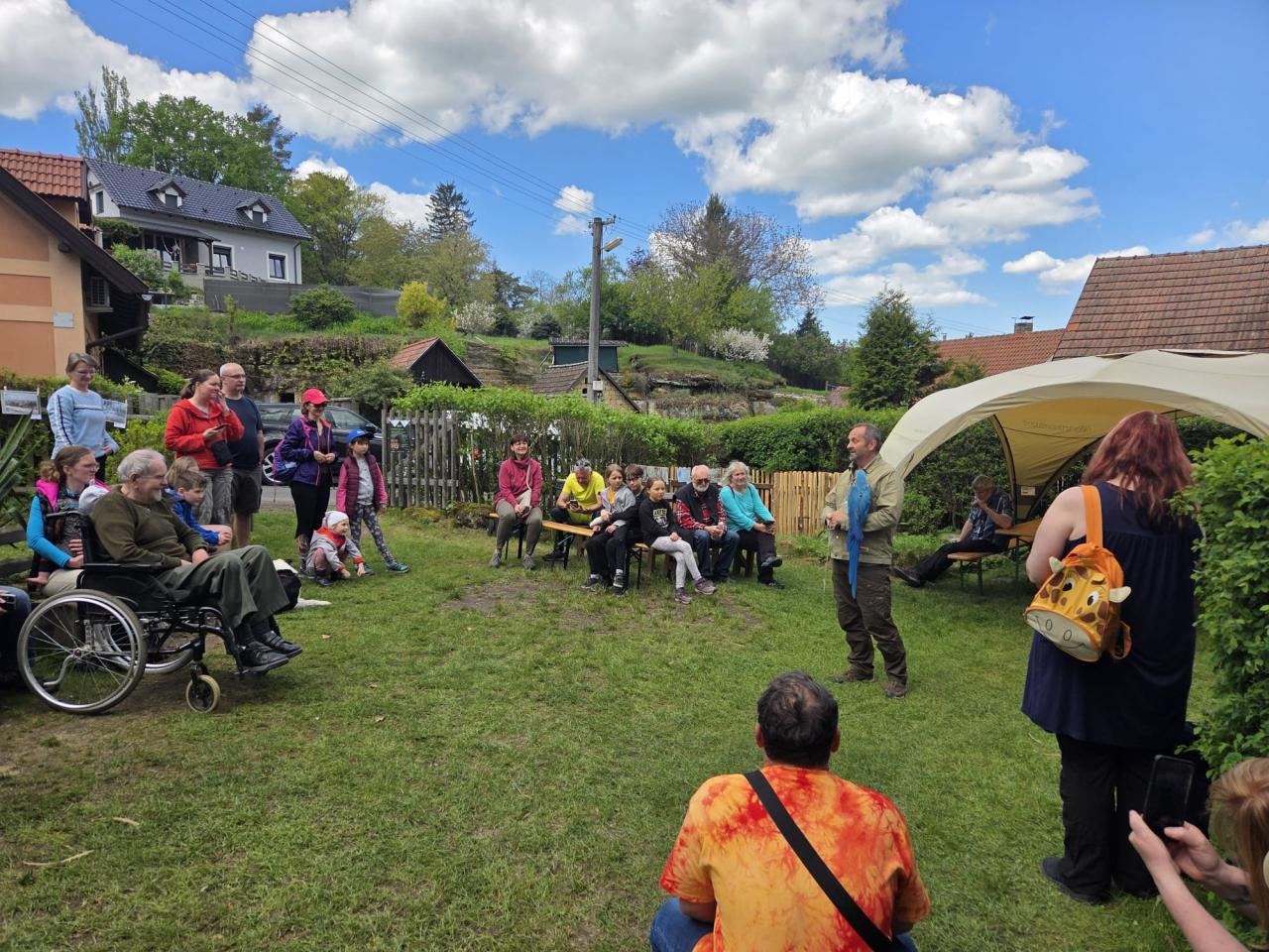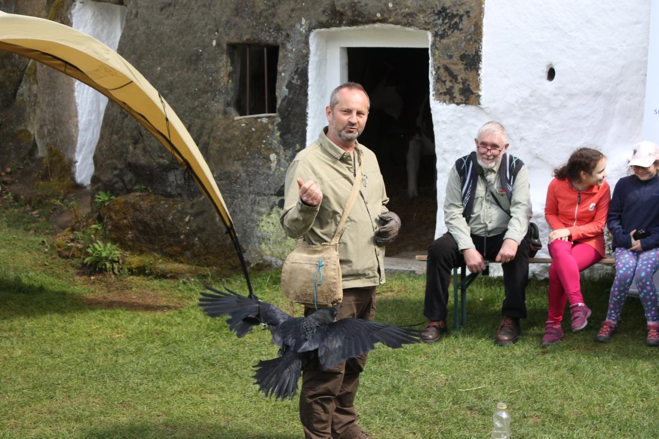 Den Země ve skalním obydlí Lhotka - letos s filmovými zvířátky z nové pohádky Zlatovláska. Návštěvníkům je představil sokolník a chovatel Miloslav Pražák.