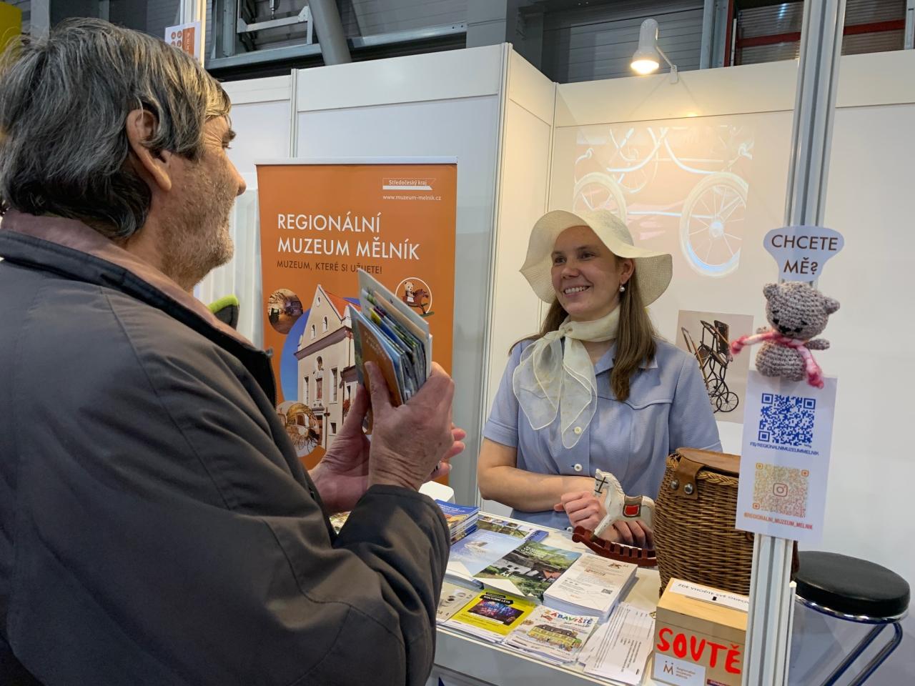 Na veletrhu cestovního ruchu na PVA Letňany v Praze jsme opět propagovaly Mělník, akce muzea, stálou expozici historických kočárků i skalní obydlí Lhotka tentokrát v retro stylu.