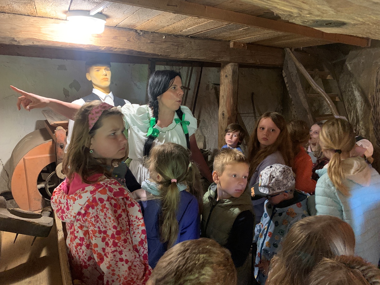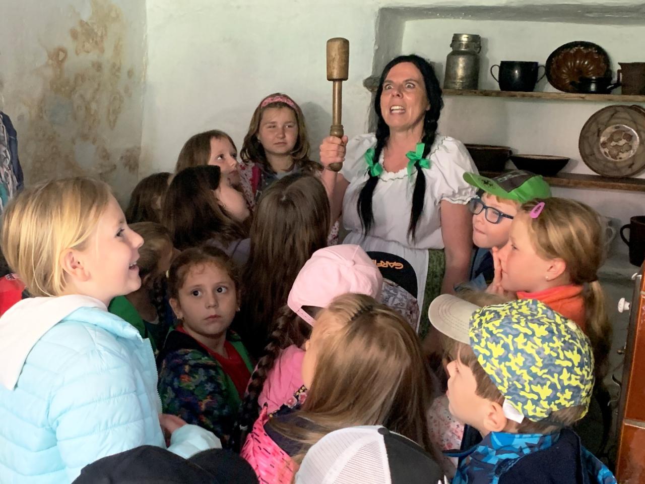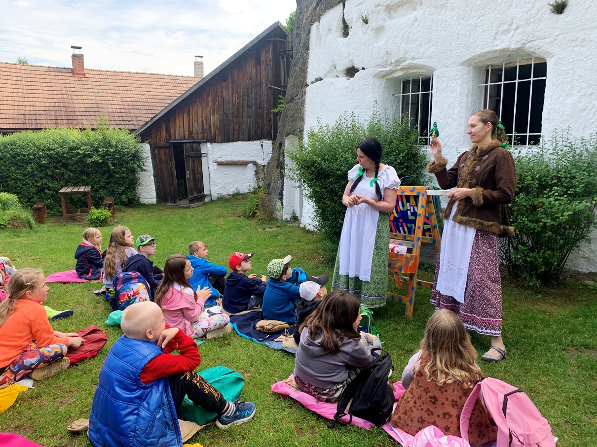Jak se žilo ve skále, vypráví Tetička Mína ve skalním obydlí ve Lhotce nejen mělnickým školákům. Děti se dozví k čemu skutečně se používalo trdlo, co je to kravské jho, jak vypadá skalní lednička nebo proč je skalních bytů a útvarů plné Kokořínsko. Potěší je i pohádka O zatoulaném kůzleti a kouzelná muzejní dílnička...