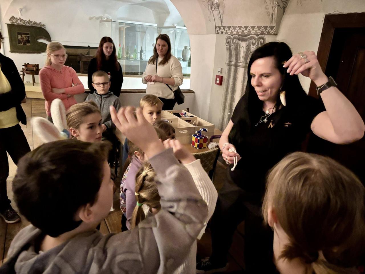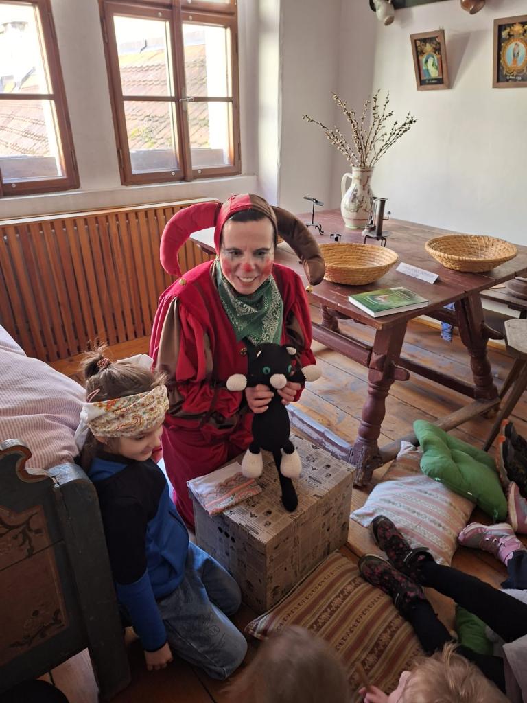 Jarní prázdniny v muzeu potěšily nejen děti. Ve středu bylo muzeum plné korálků, ve čtvrtek vyčaroval kocurek Švarc poklad a v pátek zavedlo muzejní čtení a snění na měkkých polštářích malé i velké návštěvniky do světa pověstí a kouzel. Jak by ne, když průvodcem byl Kašpárek Filuta.